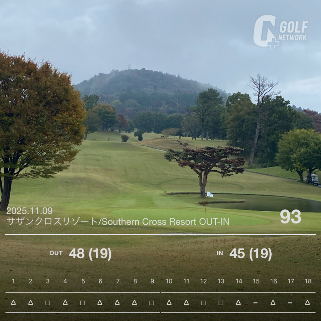 IN は 3パットのダボをパーで取り返したものの、OUT は一つもパーが取れないゲーム展開になり、IN:45(19パット)、OUT:48(19パット)の 93(38パット)。残念!
